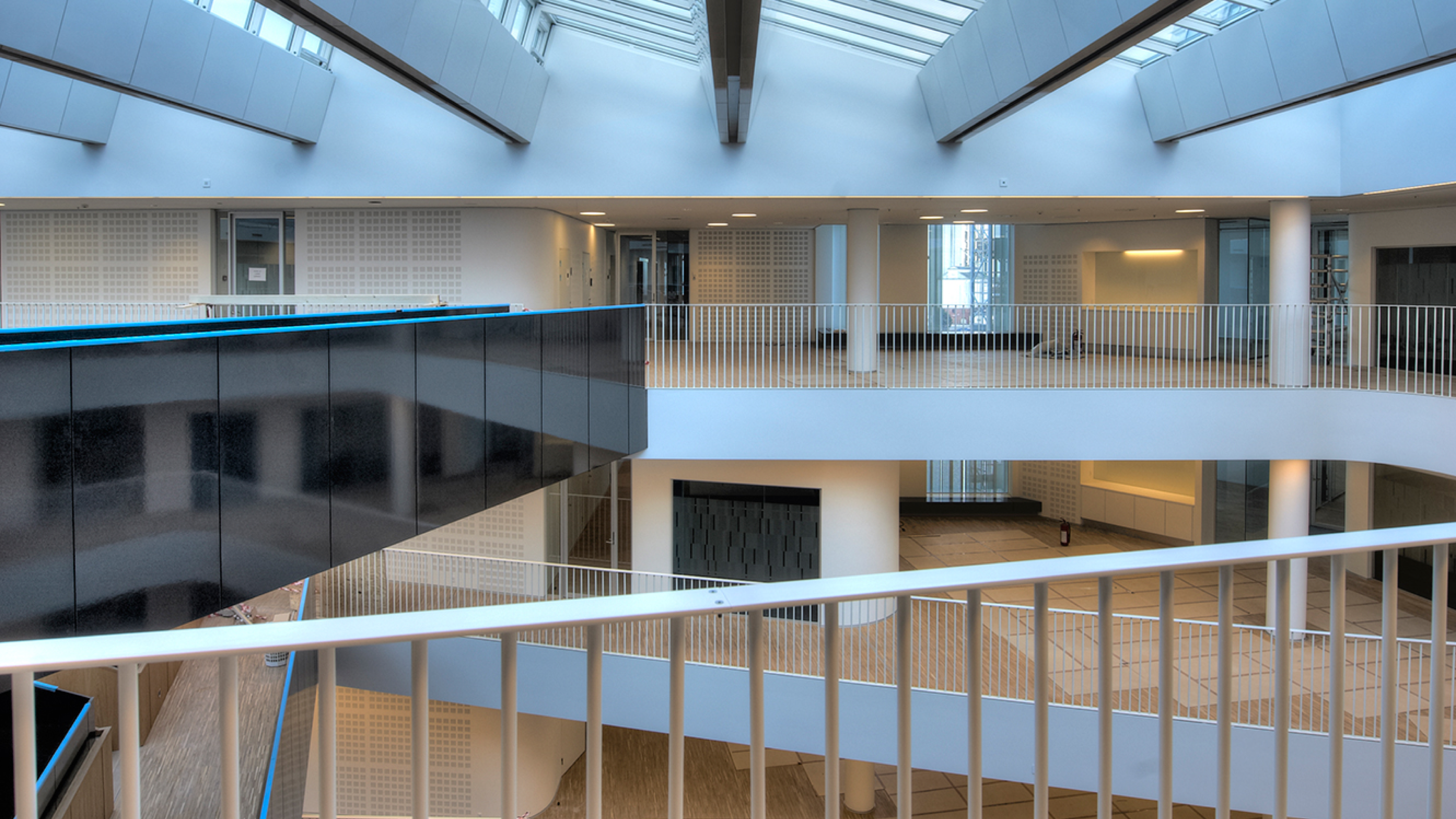 CSK har blandt andet leveret den markante centraltrappe i FN-bygningens atrium foruden bygningens mange gangbroer og værn.
