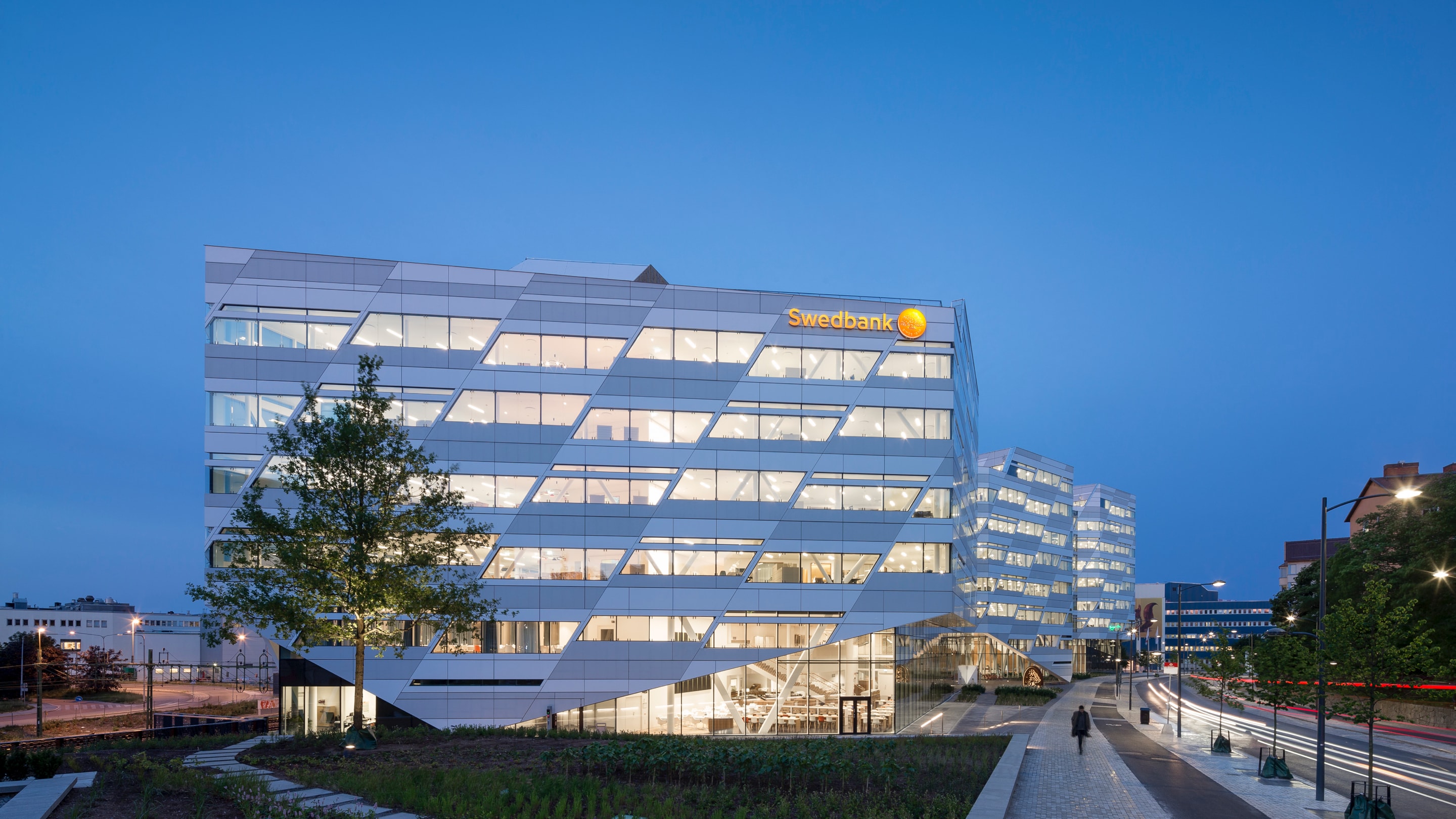 Swedbanks imposante hovedsæde er på 45.000 m2 og huser ikke færre end 2.500 medarbejdere. Domicilet er tegnet af det danske arkitektfirma 3XN og tager afsæt i bankens kerneværdier. Formgivningen signalerer således åbenhed, enkelhed, omtanke og holdbarhed.
