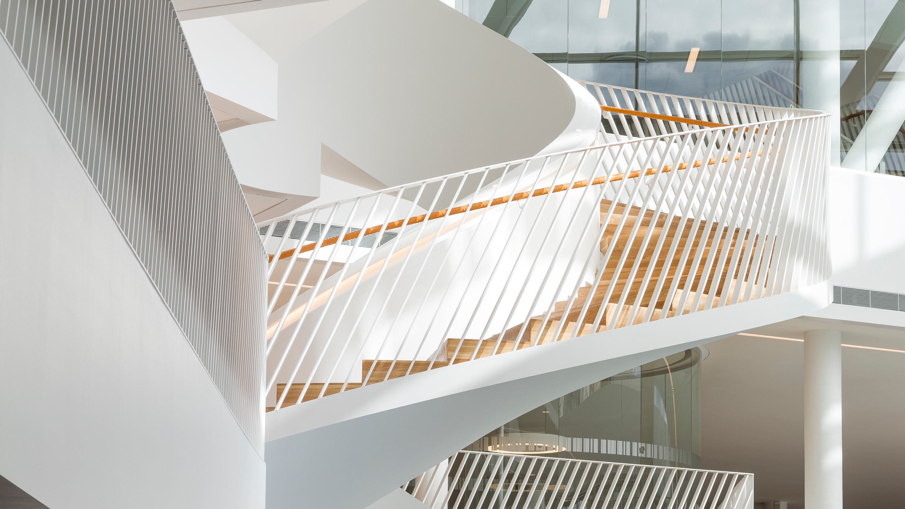 CSK har stået for udformningen af de to imponerende vindeltrapper, der udgør hovedtrapperne i Swedbanks domicil uden for Stockholm. Desuden har CSK udformet og monteret yderligere tre trapper med værn.