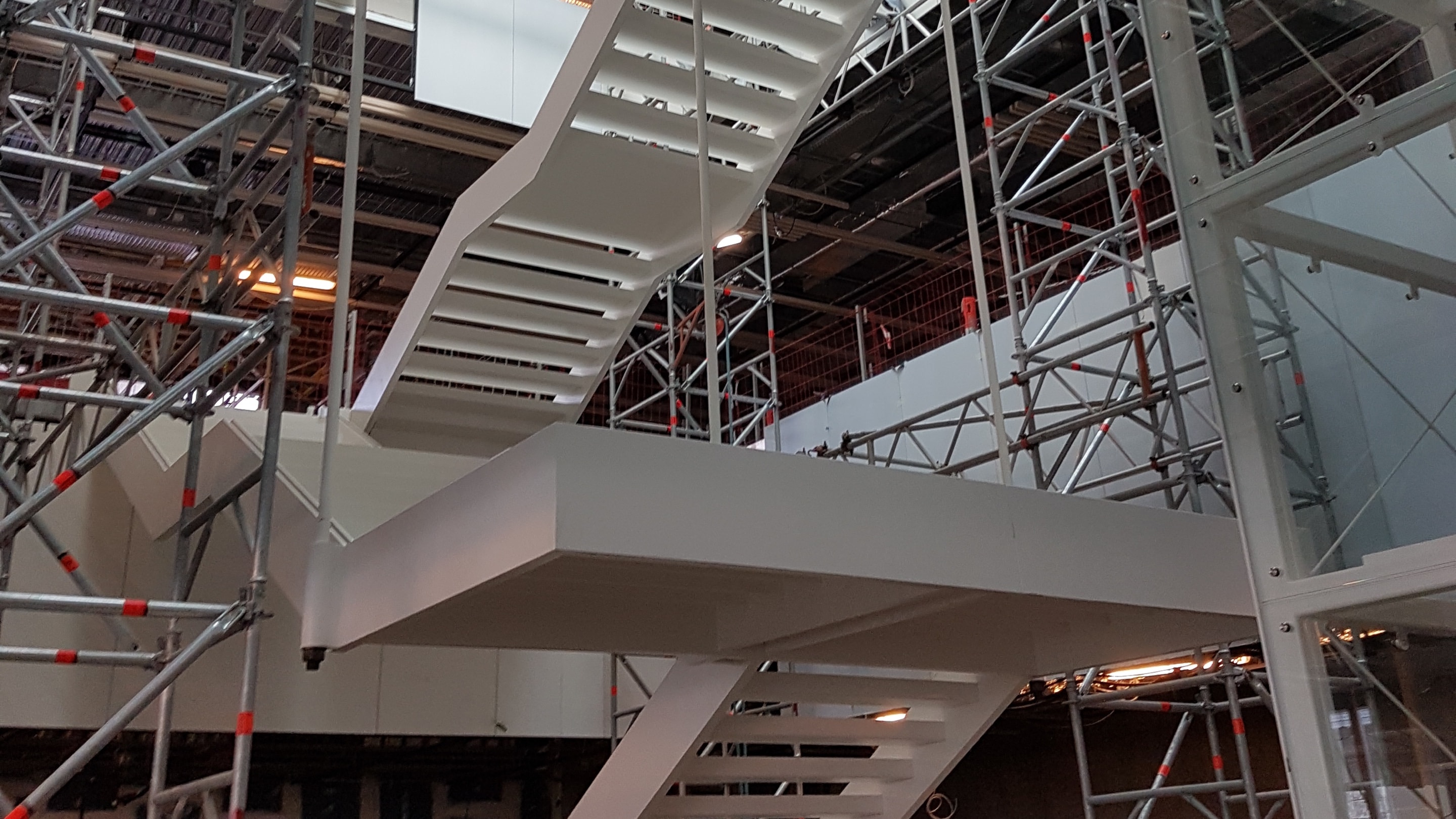 CSK har fremstillet, overfladebehandlet og monteret de ståltrapper, der binder etagerne sammen i den nye Finger E. Leverancen omfatter: