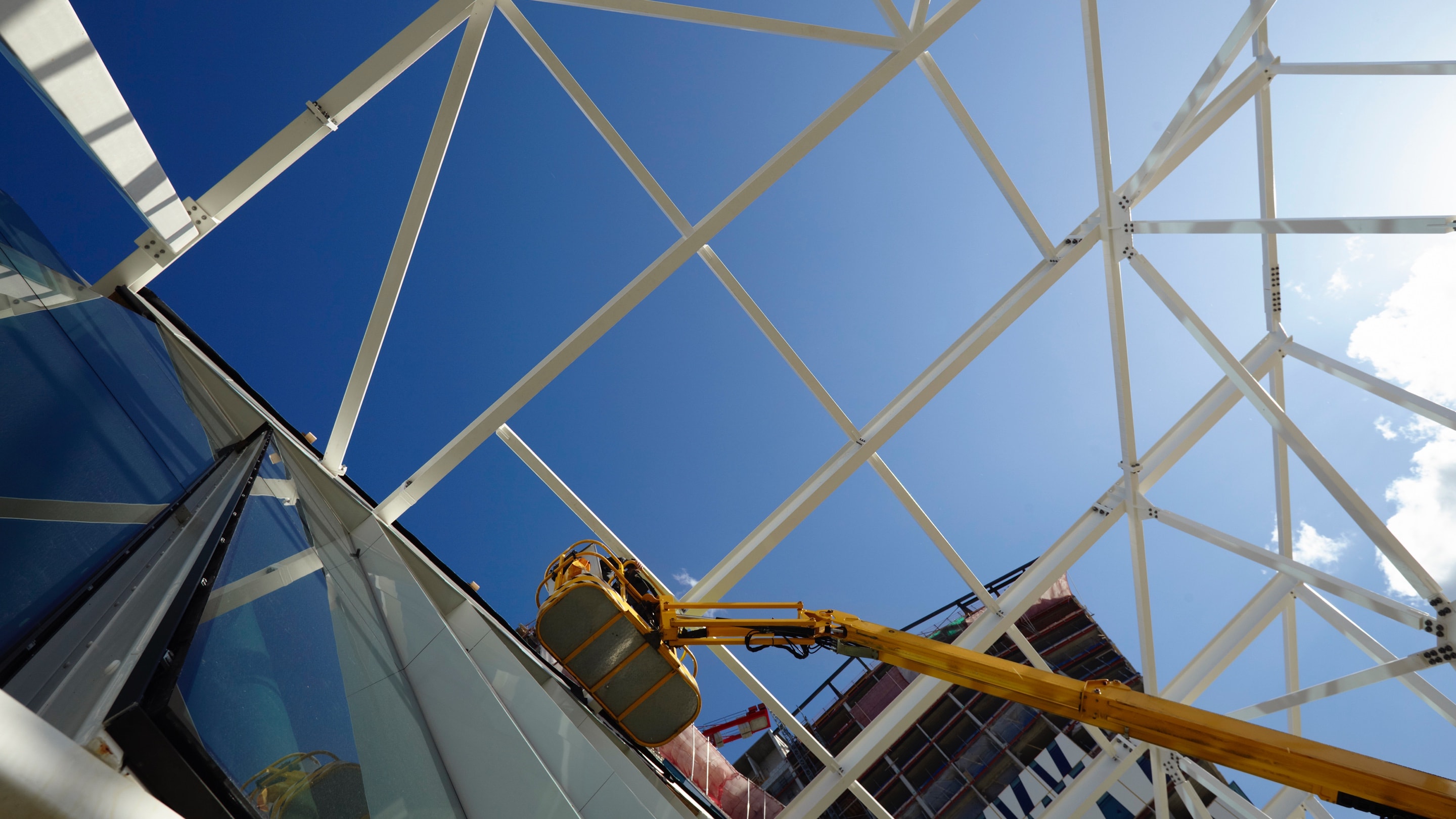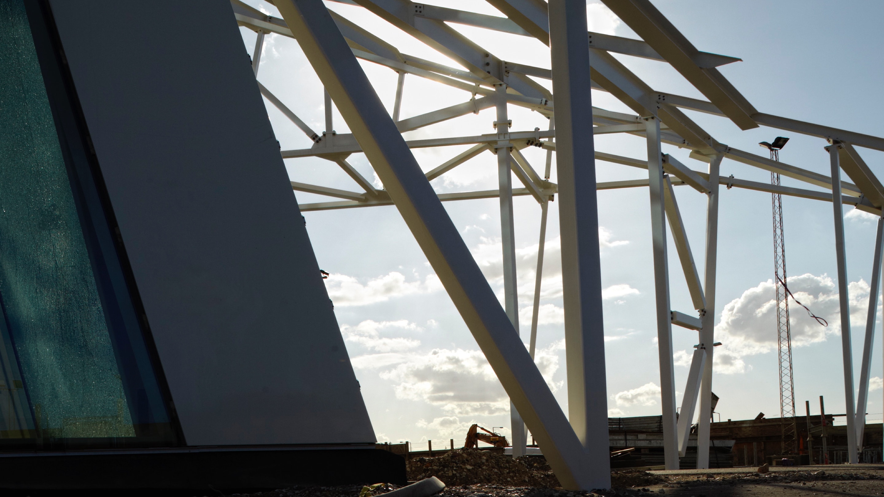 CSK har leveret 80 tons stål til byggeriet. Fortrinsvis til de store kranskinner på toppen, men også til indgangspartiet, der byder konferencegæster og rejsende velkommen med en gigantisk stålbue. Derudover har vi leveret både indendørs og udendørs stål til flere konstruktioner i bygningen.
