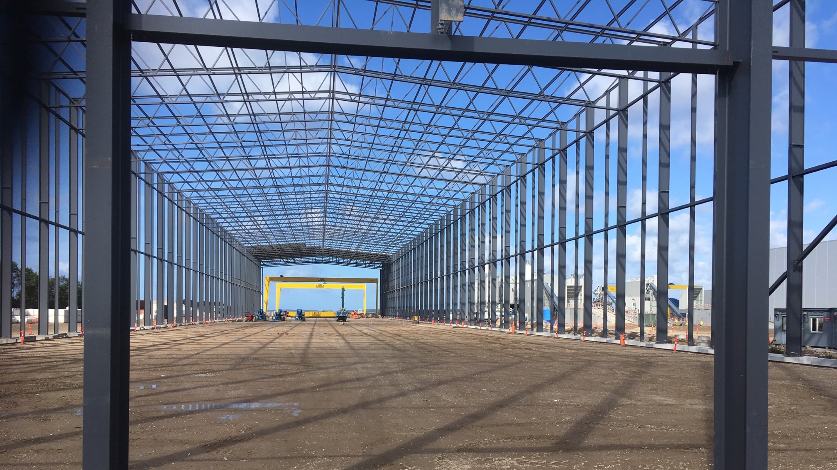 The four production halls together cover an area of 30,000 m2. The largest hall accounts for half of this alone, with a length of 305 metres, a width of 53.5 metres and a height of 25 metres.